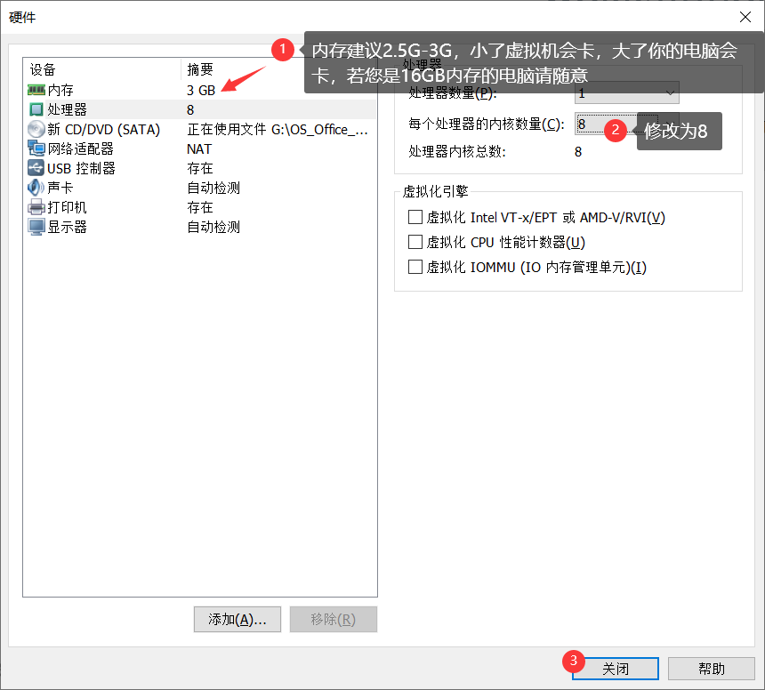 4.为了让虚拟机运行的更流畅,进行自定义硬件