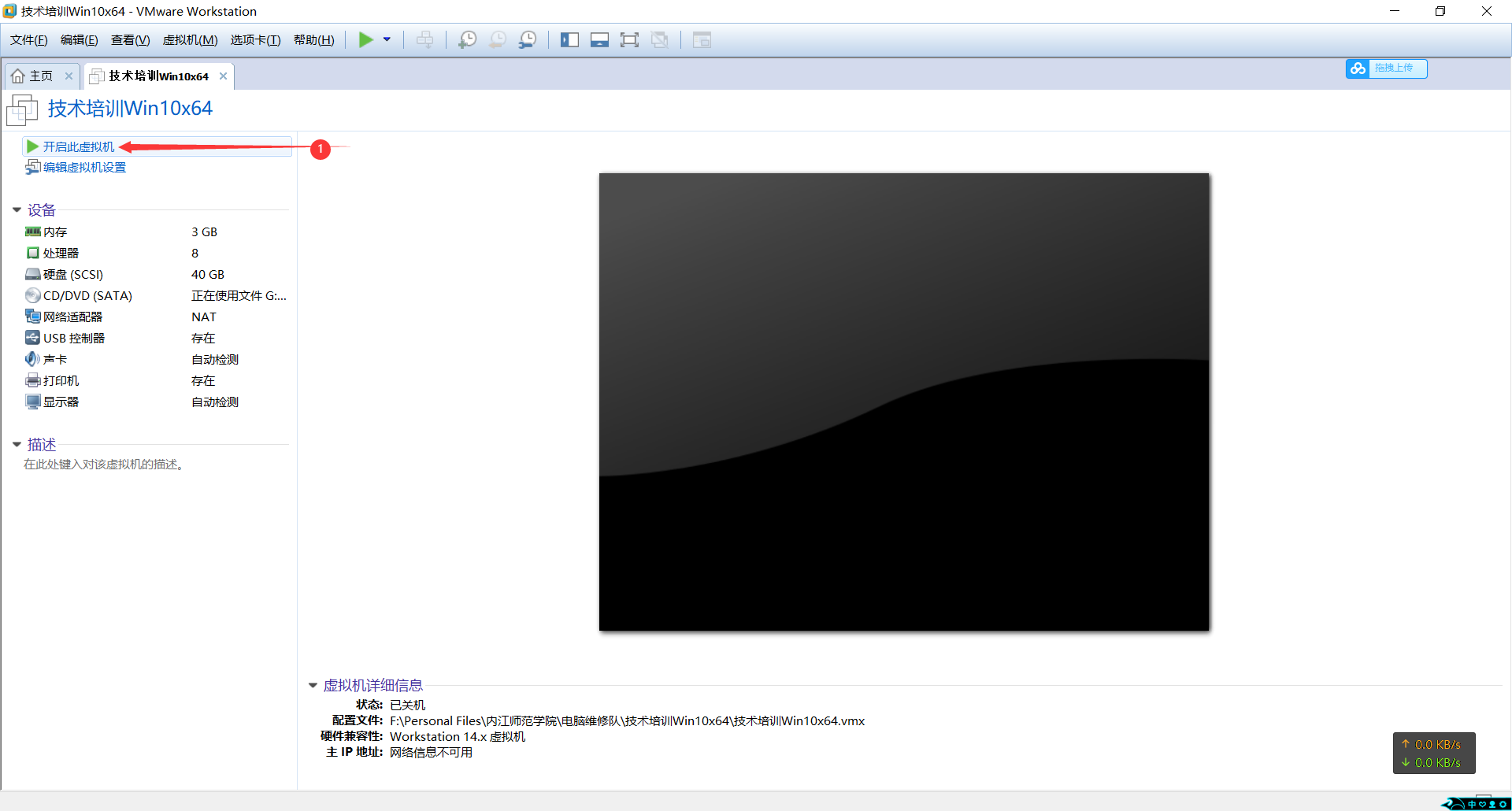 1.打开 VMware-workstation 14主界面,按图示操作。